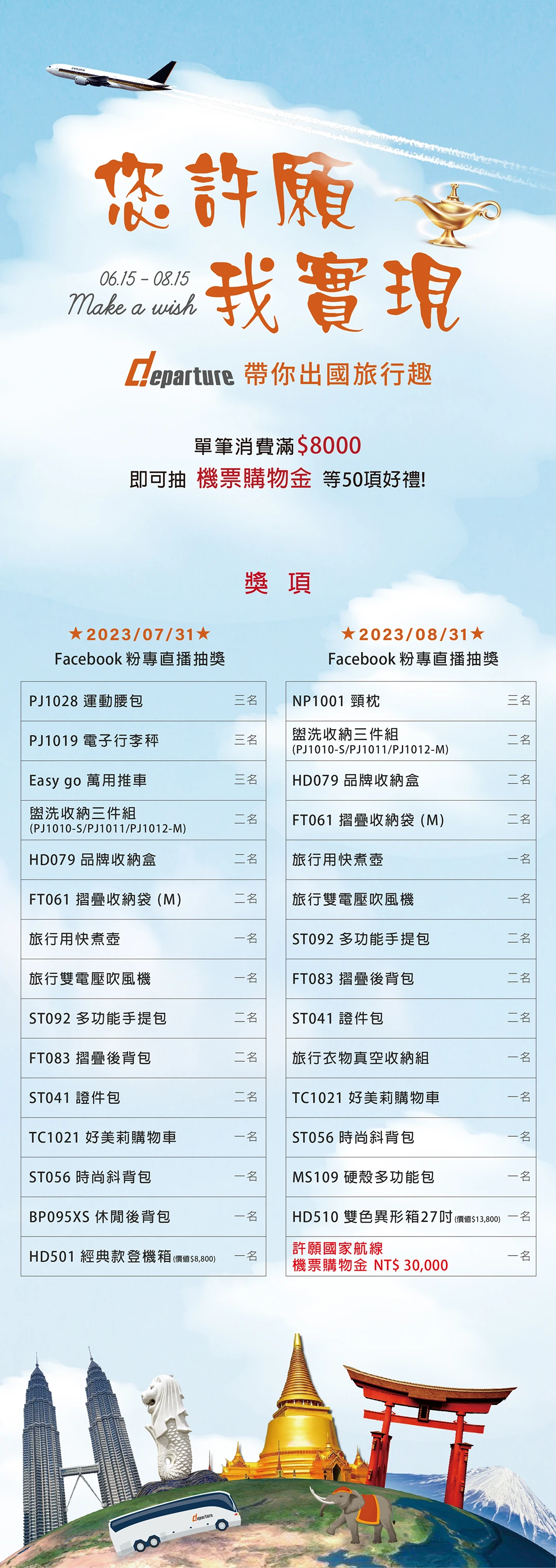 【活動】您許願 我實現 departure帶你旅行趣 - 活動期間:2023/06/15~2023/08/15