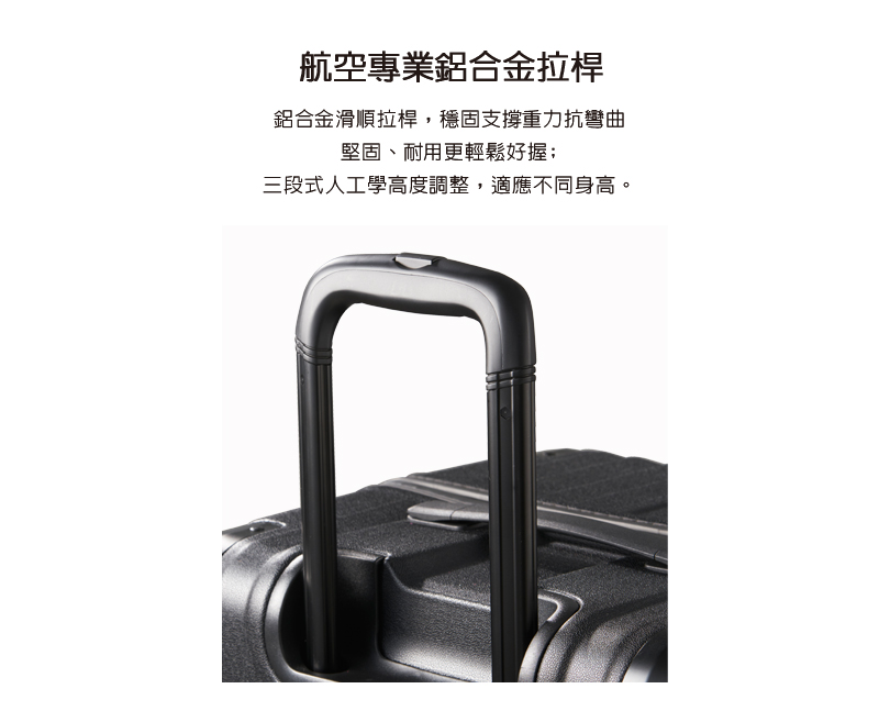 • 三段式符合人體工學的頂級鋁合金滑順拉桿