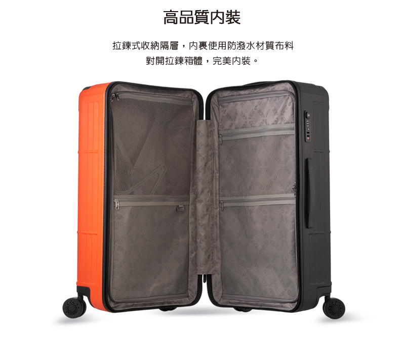 《雙色異形拉鍊箱》行李箱-29吋 黑色+橘色