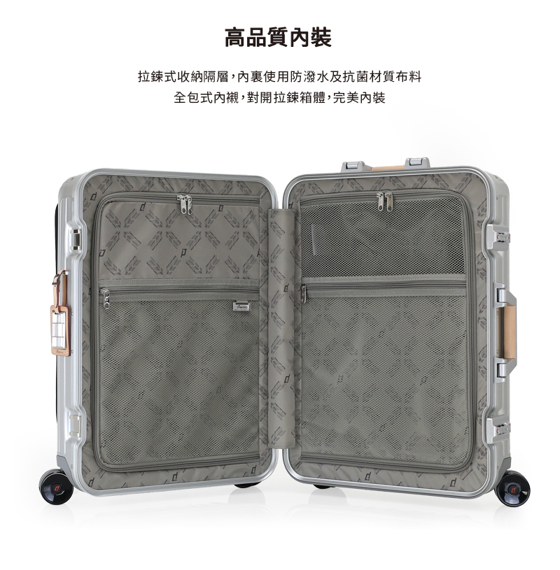 • 材質:箱殼 100% 鋁鎂合金;內裡 100% NYLON