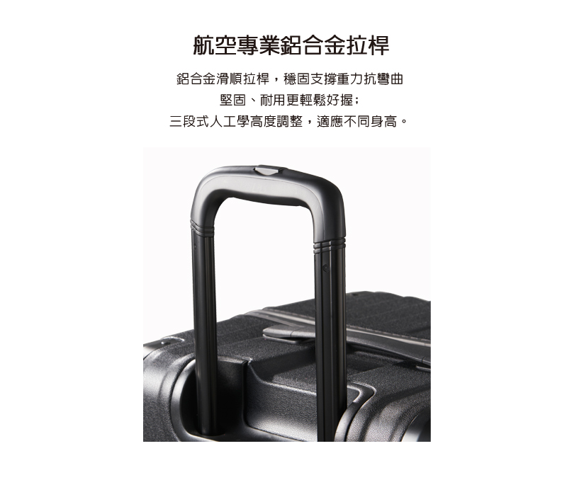 • 三段式符合人體工學的頂級鋁合金滑順拉桿