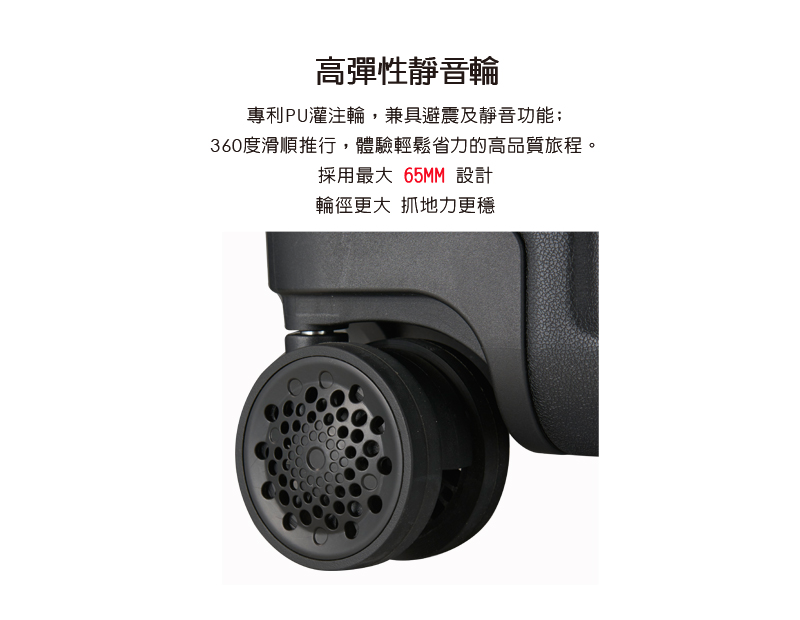 • 輪子採用最大65MM設計,輪徑更大 抓地力更穩