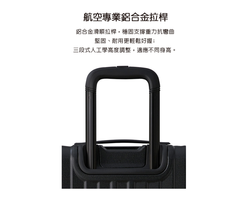 • 三段式符合人體工學的頂級鋁合金滑順拉桿