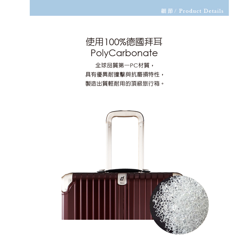 • 材質:箱殼 100% PC;內裡 100% NYLON