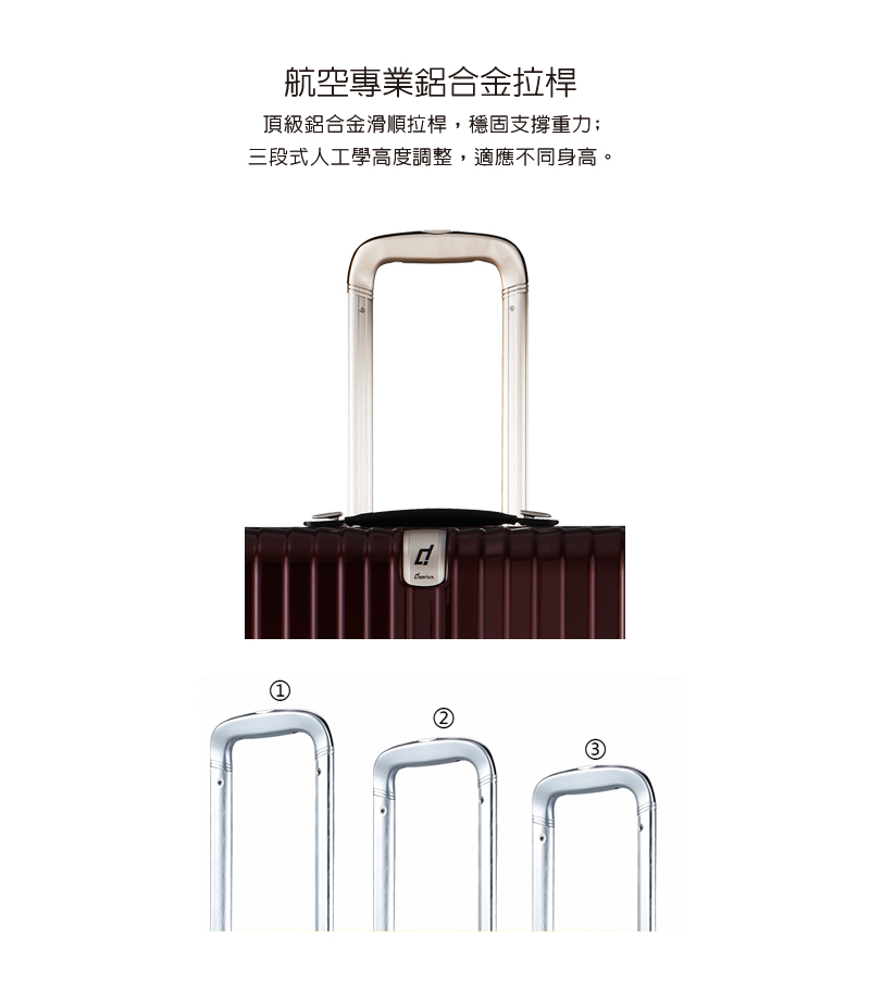 • 三段式符合人體工學的頂級鋁合金滑順拉桿