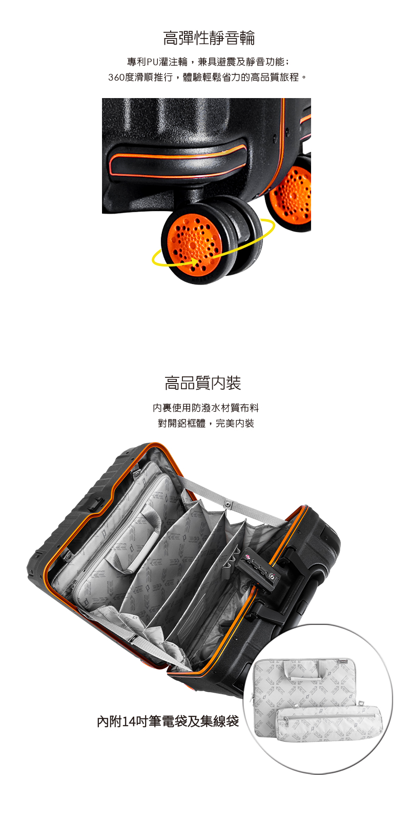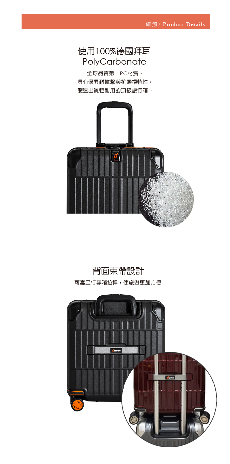 • 材質:箱殼 100% PC;內裡 100% NYLON