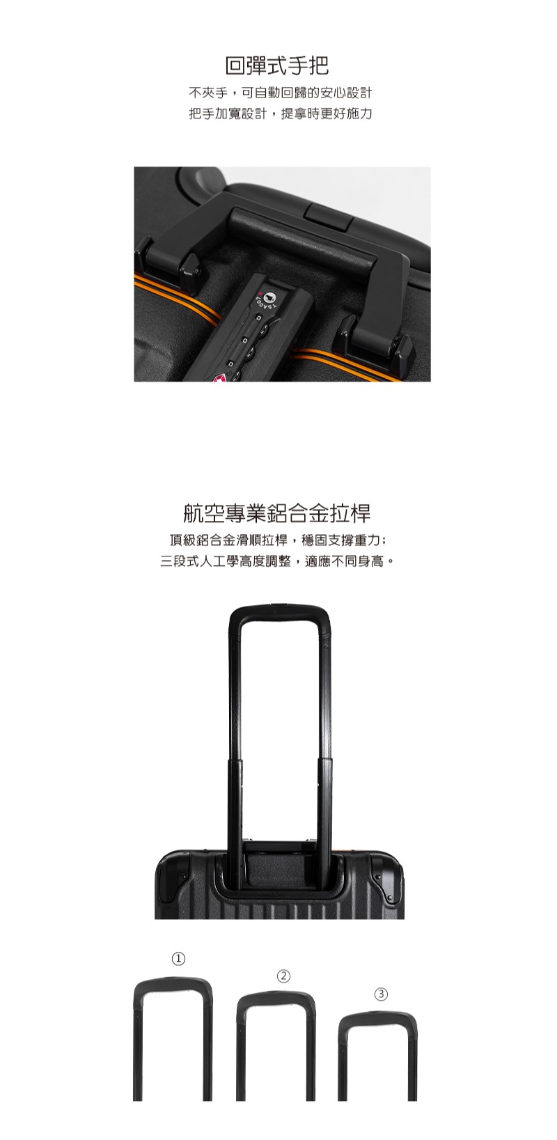 • 三段式符合人體工學的頂級鋁合金滑順拉桿