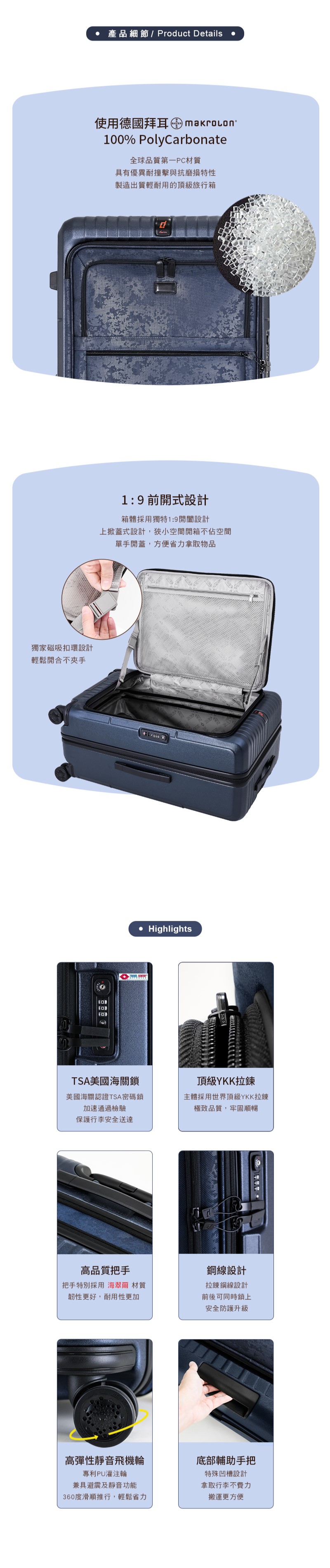 • 材質:箱殼 100% PC;內裡 100% NYLON
