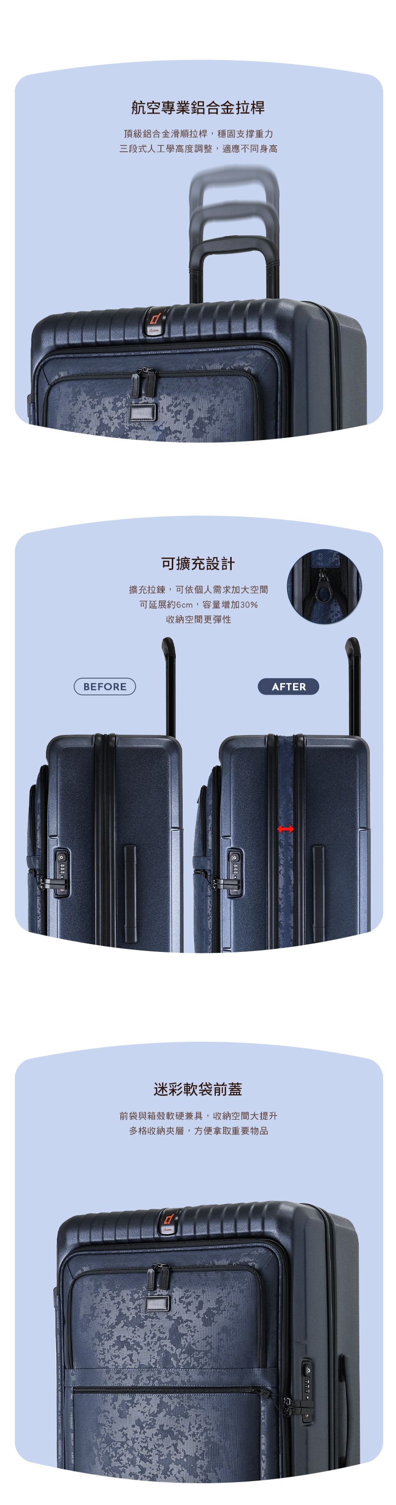 • 箱體及內部夾層皆有擴充拉鍊設計