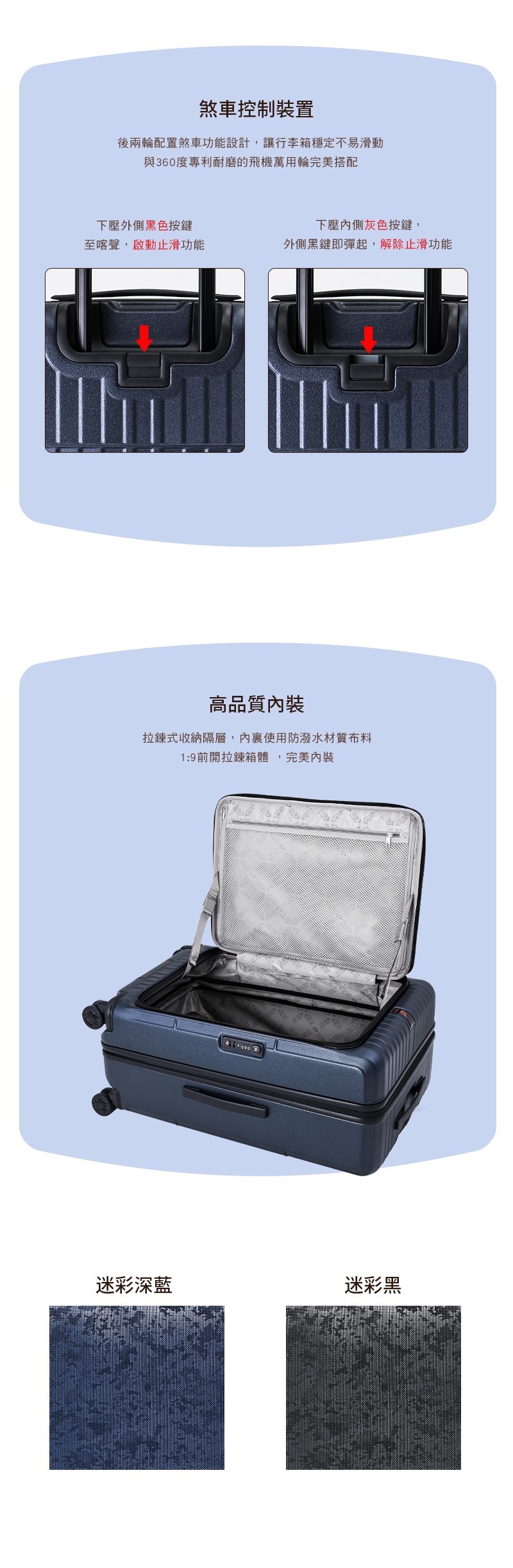 • 後兩輪配置煞車功能設計,讓行李箱穩定不滑動