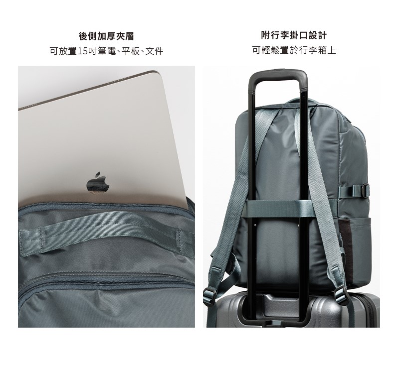 • 後側加厚夾層,可放置15吋筆電、平板、文件