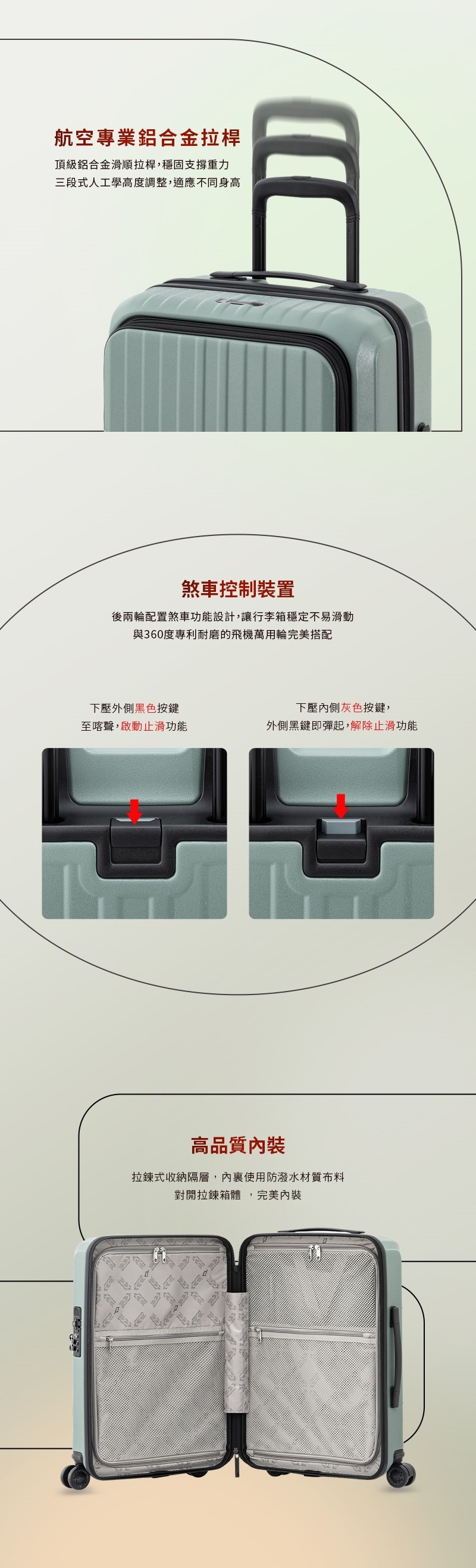 • 後兩輪配置煞車功能設計,讓行李箱穩定不滑動