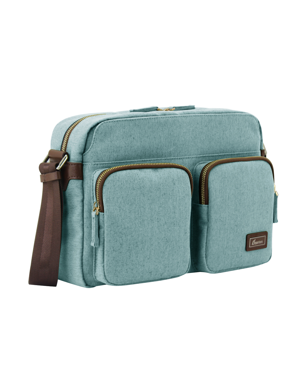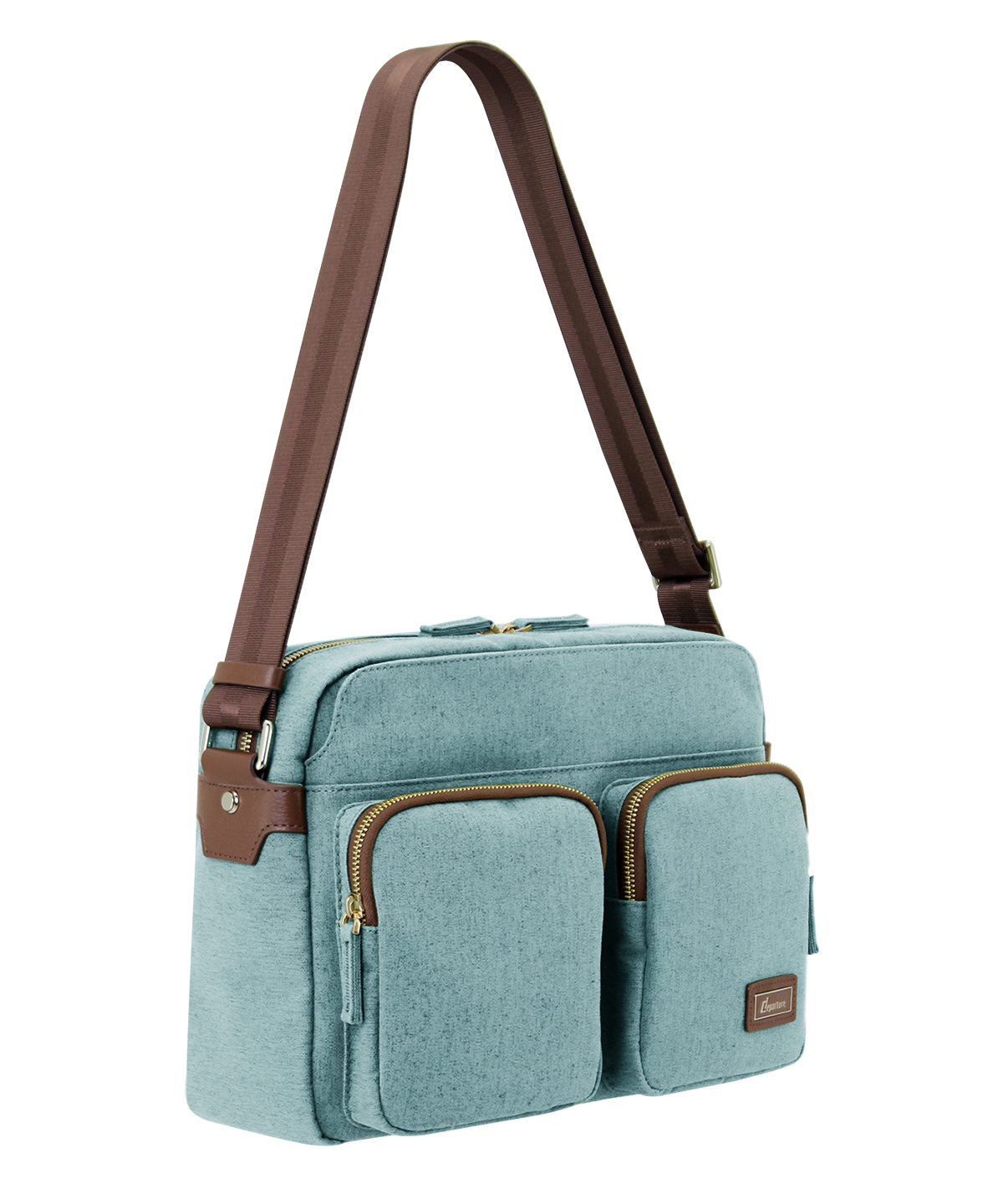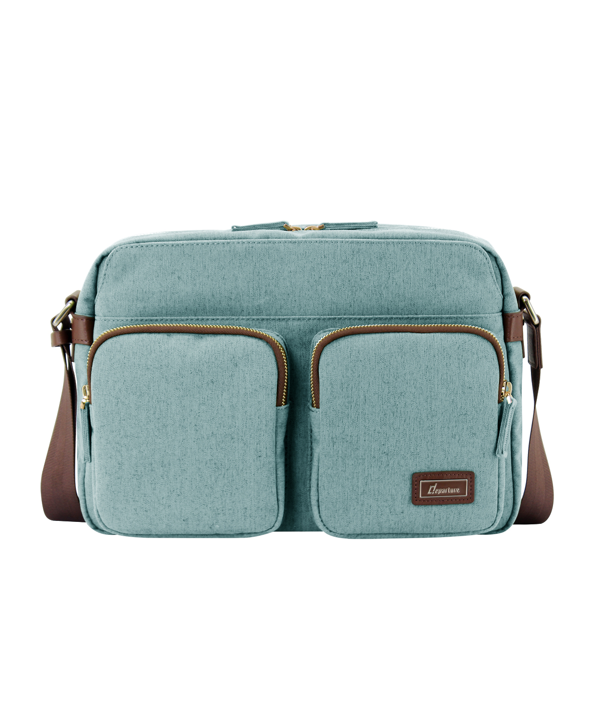 《斜背》雙拉鍊前開側袋斜肩包-彩藍色