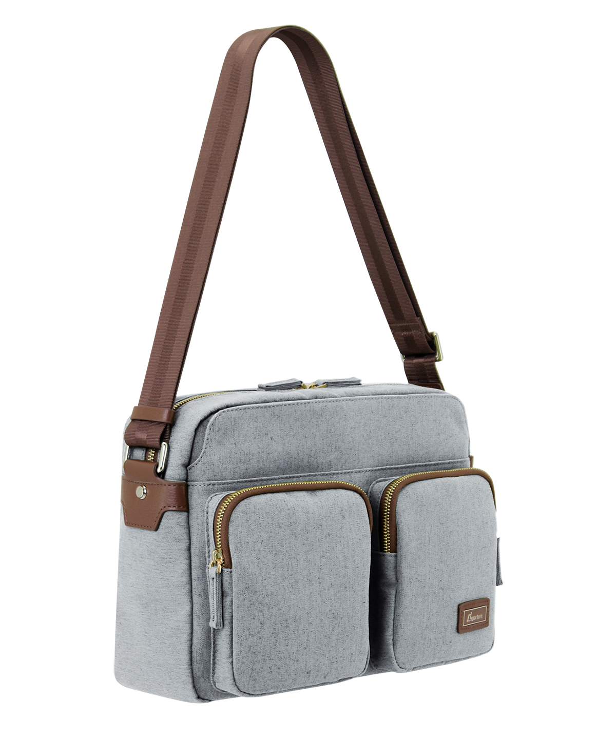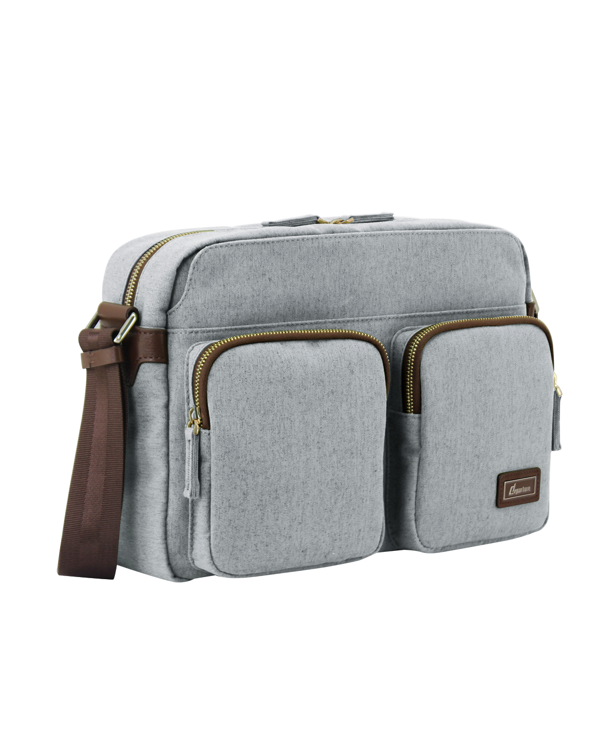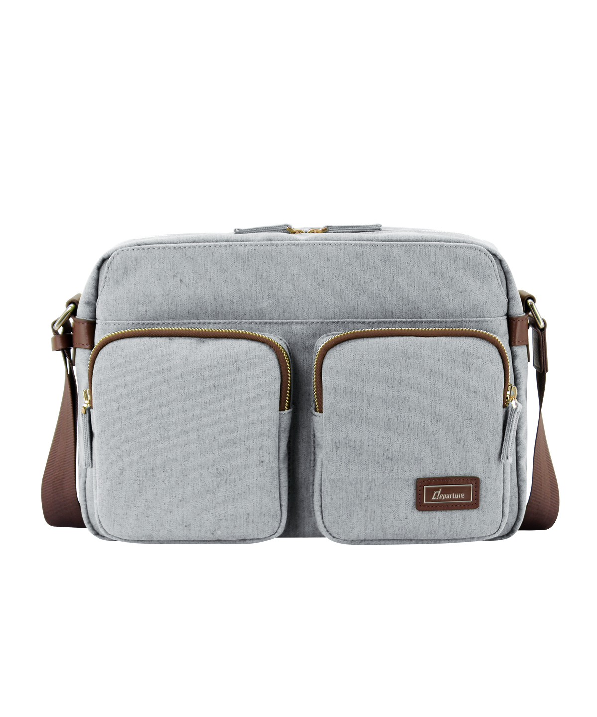 《斜背》雙拉鍊前開側袋斜肩包-灰白色